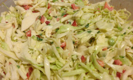 Creamy Coleslaw Salad This delicious creamy coleslaw recipe is the perfect salad for backyard barbecues and picnic’s. A delightful blend of vinegar with a touch of sweetness and crunch; a salad that will please everyone.